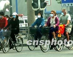 四月底的北京城正是全民抗御“沙斯”病毒的關(guān)鍵時(shí)期,一對(duì)外國(guó)夫婦和民眾一樣戴著口罩騎自行車上街,大家同舟共濟(jì),共渡難關(guān)。作者:賈國(guó)榮
