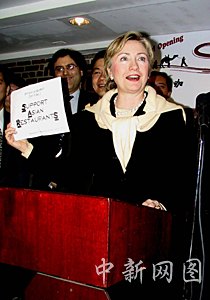 讓蔡老板開心的是今天舉行的新張儀式,聯(lián)邦參議員希拉里·克林頓成為小店新張儀式的主禮嘉賓。今天上午,希拉里與華埠人士在“絲路”咖啡屋探討振興華埠議題,在持續(xù)了數(shù)十分鐘的討論和記者會(huì)后,希拉里走到門口,拿起剪刀為咖啡屋開幕剪彩。一時(shí)間鑼鼓喧天、獅舞人笑,給冷清多日的華埠帶來(lái)了喜氣。