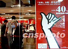 非典型肺炎的負面影響,令香港百貨零售業深受打擊,而專售高檔服飾的商店為逆市自救,不惜以“非典奇艱,非凡折扣”的減價口號招徠顧客。作者:洪少葵