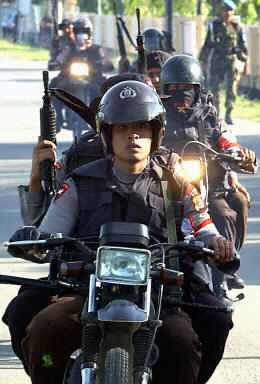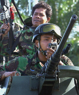 印度尼西亞政府18日宣布將對亞齊叛軍實行軍事打擊,并在該國亞齊省實施戒嚴。圖為印尼政府軍在亞齊省內加強安全警戒。