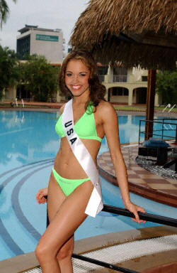 2003環球小姐世界總決賽5月18日至6月3日將在巴拿馬舉行。圖為穿著比基尼泳裝亮相的美國小姐蘇茜·卡斯蒂洛。