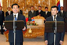 | 5月26日至6月5日,胡錦濤主席將對俄羅斯聯邦、哈薩克斯坦共和國和蒙古國進行國事訪問,并出席在莫斯科舉行的上海合作組織成員國元首第三次會晤、在圣彼得堡舉行的建市300周年慶典和在法國埃維昂舉行的南北領導人 |