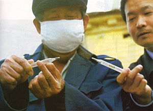 村里將有關SARS病癥和預防的知識印刷下來,分三次挨家挨戶發放。村干部把這種宣傳材料叫做“明白紙”。村里還統一購買了一批5斤一桶的過氧乙酸,每戶發放一桶,人口多的發兩桶,讓村民自行消毒。