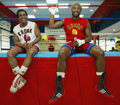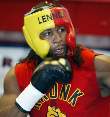 北京時間5月30日凌晨,英國拳王劉易斯為備戰與約翰迅的WBC重量級拳王爭霸賽,在賓西法尼亞進行訓練。圖為劉易斯訓練前接受采訪。