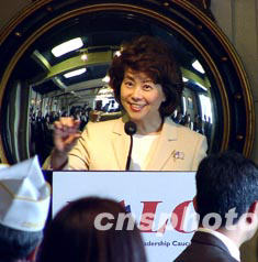 美國勞工部部長趙小蘭當地時間二十九日來到“無敵號”航空母艦博物館,出席紐約慶祝亞裔傳統月午餐會。她說,四十年前,亞裔在美國總人口中的比例不到百分之○點五,而現在已上升百分之四,達到一千三百萬人。作者:龔文謨