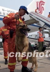 五月三十日,赴阿爾及利亞進行地震救援的中國國際救援隊乘包機回到北京。中國國際救援隊是繼法國救援隊后震區第二支成功搜索到幸存者的隊伍。幫助搜索到幸存者、立下戰功的搜索犬“超強”同機回到北京。中新社記者:張煒