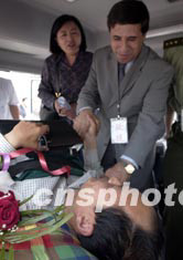 組圖:在阿地震中受傷的中國(guó)公民回到北京
