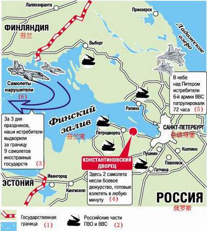 不過隨后當記者向俄空軍新聞處負責人亞歷山大-德羅貝舍夫斯基致電詢問時,他卻否認了這一說法。不過他證實,圣彼得堡峰會期間,俄空軍第六軍和防空軍確實在高警備狀態下執行任務。軍方動用了比平時更多的雷達站,而且還投入了很多С-300高射炮用于防空。當各國首腦專機飛臨時,空軍飛機前去迎接并提供相應的安全保衛措施。所有從邊境通往圣彼得堡飛機場的空中走廊都被嚴密地保護起來。因此,圣彼得堡以及它的周邊地區包括康斯坦丁宮的上空都處于保護之下。(春風)