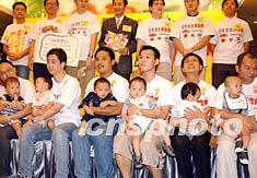 香港六月十五日舉行不同形式的歡慶父親節活動,在時代廣場,眾多年輕父親帶著小朋友參加在這里舉行的題為“做個健康爸爸努力保護頭家”的活動。錢興強 攝