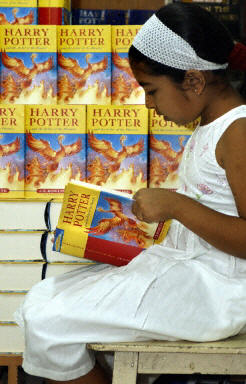 在全球書迷的引頸期盼下,風靡世界的暢銷兒童讀物《哈利·波特》系列第五集《哈利·波特和鳳凰的指令》終于在格林尼治時間20日23時(北京時間21日上午7時)全球同步發行。