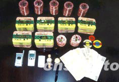 四月三十日凌晨五時,廣東韶關(guān)市警方、廣州鐵路警方民警和湖南郴州市警方民警會合,在廣州花都區(qū)將在火車上逃跑的疑犯唐少華抓獲,并從其行李中當場查獲籌碼等價值一百三十一萬元的財物。