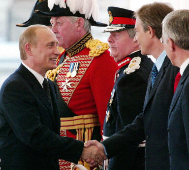 英國王儲查爾斯親王到希思羅機場迎接普京和夫人,然后共同驅車到倫敦市中心與英國女王和首相會面。