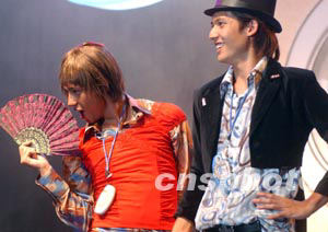 香港樂壇人氣偶像BOYZ,六月二十五日晚在諾基亞香港舉行的產品發布會上,擔任諾基亞3300宣傳大使。 中新社記者 錢興強