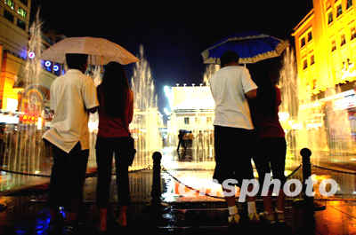 而更大規模的人群涌向了不同的地方。北京商委說,盡管下起了大雨,昨晚仍吸引了一百五十萬市民走出家門購物消費和休閑娛樂。其中,王府井商業街的顧客達二十萬人,西單商業街的客流突破三十萬人,宣武區三個主要商場及消夏夜市活動共吸引近二十五萬市民,朝陽區當晚各商圈客流達到三十四點三萬人,海淀區六家主要商場客流達二十二萬人……