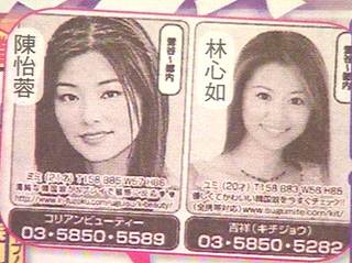 中新網(wǎng)6月30日電 在日本最新一期成人八卦雜志《周刊實(shí)話》中,0204號的小廣告中竟然赫然出現(xiàn)了中國臺(tái)灣玉女偶像陳怡蓉及林心如的照片,她們不僅被說成是韓國女生,還被冠上了不實(shí)年紀(jì)及三圍尺寸。