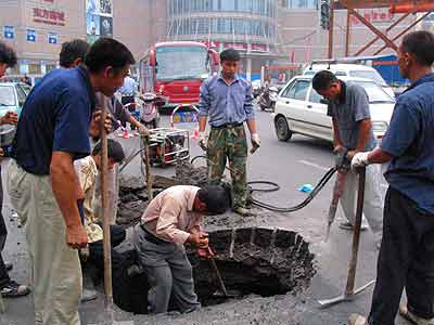據(jù)介紹,南京的地質(zhì)狀況較復(fù)雜,地下水位高,有較多的古河道及大量含水砂層、斷裂破碎帶、軟流塑地層等不同地質(zhì)情況。昨日塌陷的兩處位于新街口鬧市區(qū),一處在三元巷加油站門(mén)口,另一處在新街口轉(zhuǎn)盤(pán)的東南角。兩處塌陷時(shí)間大約在下午4時(shí)左右,塌陷后沒(méi)有造成人員傷亡,但給新街口的交通造成一定影響。市政部門(mén)立即在塌陷處設(shè)置了警示標(biāo)志,并有交警在現(xiàn)場(chǎng)指揮交通。下午5時(shí)多,南京市政110的趕來(lái)?yè)屝蕖?/p>