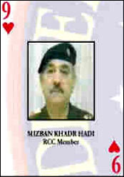 美軍中央司令部當天發表聲明說,伊拉克阿拉伯復興社會黨的一名地區領導人、伊革命指揮委員會成員哈迪8日向駐巴格達的美軍投降。他在被美軍通緝的55名前伊拉克高官名單中排名第23位,在美軍撲克牌通緝令中為紅桃9。