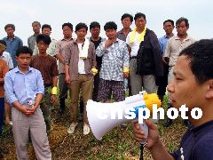 7月9日,蚌埠水利設計院專家許曉松來到行洪口大堤,為防汛隊員講解護堤應注意的技術問題,不讓洪水輕易入侵行洪區3.8萬人的家園;春影霾憾位吹剃愖幼煨泻榭陂L1500米,在淮河更大的洪峰到來時,將在該行洪口炸壩泄洪,以確保城區安全。劉兵生 攝