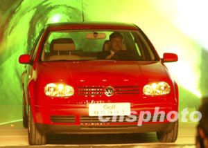 中國(guó)一汽-大眾新生產(chǎn)的世界經(jīng)典兩廂高爾夫轎車15日在長(zhǎng)春一汽-大眾總裝車間下線,并由德國(guó)大眾畢睿德博士駕駛展現(xiàn)在人們面前。這款新車的發(fā)動(dòng)機(jī)排量有1.6、1.8、2.0三種,售價(jià)在15萬至18.5萬元人民幣,為消費(fèi)者提供了知性、謙和、理性的需求。中新社記者:趙振清