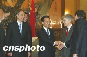 溫家寶說,他高興地看到近年來,中英關系不斷得到鞏固和發展,他愿以布萊爾此次訪問為起點,與其攜手共同拓展雙邊關系,使中英關系取得更快、更大的發展。