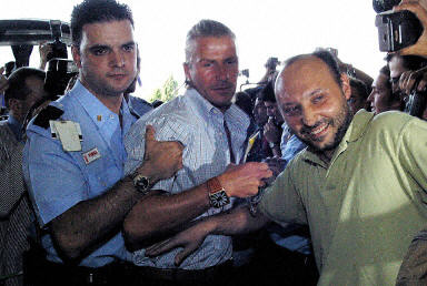 大批球迷到馬德里機場歡送皇馬亞洲之旅。羅納爾多受球迷“偷襲”。