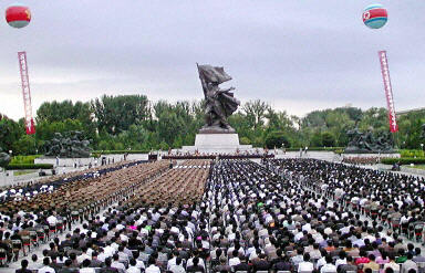 朝鮮首都平壤市各界人士26日清晨舉行中央報告大會,隆重紀念朝鮮祖國解放戰爭勝利50周年。