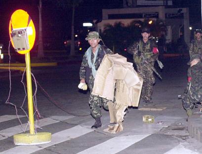 幾小時以后,數十名武裝軍人于27日凌晨占據了馬尼拉市金融區內的一座主要商業中心,并在周圍安放炸藥。