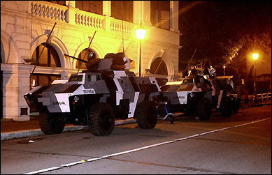 據法新社報道,阿羅約發表全國電視講話說:“我限令你們在今天下午五點之前投降繳械,回到兵營去。”