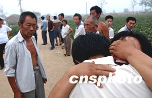 圖:辛集爆炸煙花廠遇難者親屬辨認遺體