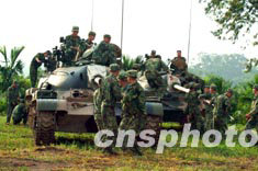 八月的海南五指山區某裝甲部隊頂著高溫烈日艱苦訓練。作者:蔣聚榮