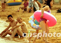 中國北方近日持續高溫,海濱沙灘成為游人休閑避暑的好去處。中新社記者:宋吉河