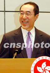 原工商及科技局局長唐英年八月四日出任香港特區政府財政司司長。中新社記者:潘索菲