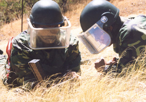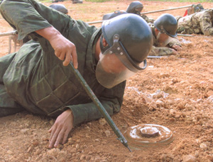 根據(jù)中國和厄立特里亞兩國政府達成的協(xié)議,國務院、中央軍委于2002年底開始,先后兩次派出以成都軍區(qū)掃雷專家為主的專家組,赴厄執(zhí)行國際人道主義援外掃雷任務。期間,中國專家組培訓厄方121名學員,并對4片山地雷場和兩條公路進行了指導性掃雷,共掃除防坦克和防步兵地雷近千枚,掃除雷區(qū)面積近20萬平方米。所掃過的雷場經(jīng)過當?shù)卣炇眨瑹o殘留地雷,未損壞一棵樹木,中厄雙方均無一傷亡,達到了國際掃雷標準。聯(lián)合國發(fā)展計劃署和掃雷行動合作中心等有關方面的官員到現(xiàn)場觀察掃雷作業(yè)后,贊揚中國專家組掃雷質(zhì)量高、速度快,既環(huán)保、又經(jīng)濟。
