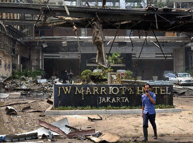 印尼首都雅加達南部的中心商業區附近的一家飯店發生劇烈爆炸。周圍幾幢建筑也受到爆炸沖擊。目擊者說至少有四具尸體被抬出現場。警方確認已有5人在爆炸中死亡,另有5人重傷。