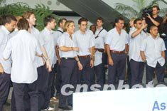 西班牙皇家馬德里足球隊(duì)八月六日下午抵香港,圖為眾球星向二千球迷致意。中新社記者:潘索菲