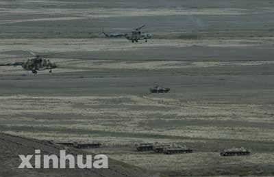 中新網8月8日電 由中國、哈薩克斯坦、吉爾吉斯斯坦、俄羅斯、塔吉克斯坦5國參加的上海合作組織成員國武裝力量反恐軍事演習進入第三天,第一階段演習8日結束,下一階段演習將在中國境內進行。