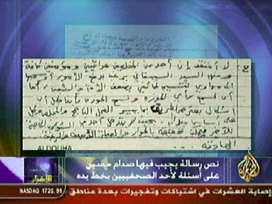 圖:半島臺播出薩達(dá)姆親筆信 呼吁發(fā)動圣戰(zhàn)