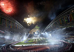 第二十二屆世界大學運動會二十一日晚在韓國大邱的世界杯體育場舉行開幕典禮,漫天的煙火將大丘夜空照得閃亮,也為世大運揭開序幕。中央社圖