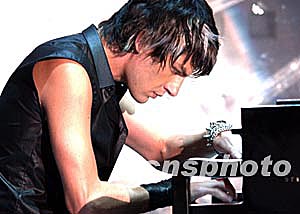 來自克羅地亞的著名鋼琴家MAKSIM,二十三日晚在香港紅(石+勘)香港體育館舉行的2003年度香港小姐競選決賽上演奏。 中新社記者:錢興強