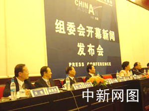 2003年中國昆明出口商品交易會(簡稱:“昆交會”)組委會舉行新聞發布會,宣布昆交會將如期于明天上午開幕。中新社記者 張明 攝