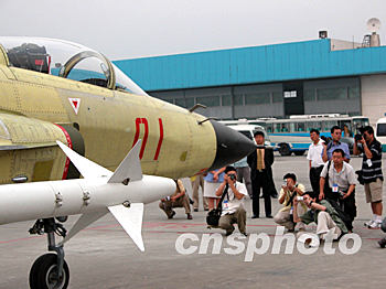 中國研制的新型殲擊機梟龍/FC-1型飛機日前在成都首次飛行,共飛行十七分鐘,取得圓滿成功,因此備受各界關注。圖為眾多媒體記者在拍攝成功首飛的梟龍/FC-1型飛機。作者:楊杰