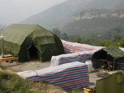 中新網(wǎng)9月13日電 昨天,天高氣清,從蓮花山往遠(yuǎn)處看,抱犢寨旅游風(fēng)景區(qū)的纜車在空中緩緩滑過。放眼身邊,是一排排規(guī)劃整齊的帳篷。其中一個(gè)最大的帳篷就是藁城毒氣彈運(yùn)到鹿泉市后的埋藏點(diǎn),也就是現(xiàn)在所說的“挖掘處理所”。這個(gè)帳篷的特殊之處在于,它是一個(gè)負(fù)壓通風(fēng)帳篷,里邊換氣需要通過特殊裝置,為的是一旦毒氣彈泄露,能夠控制在一定范圍,不至于泄到外邊。