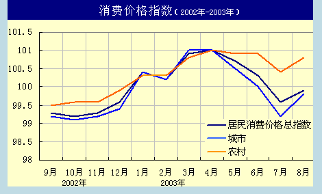 中新網9月15日電 國家統計局今日發布的最新數據顯示,今年8月份,中國居民消費價格總水平比去年同月上漲0.9%,其中城市上漲0.6%,農村上漲1.4%。與上月比,全國居民消費價格總水平上漲0.7%。1-8月累計平均,全國居民消費價格總水平比去年同期上漲0.6%。這一數據顯示中國已經逐步走出微幅通貨緊縮的局面。