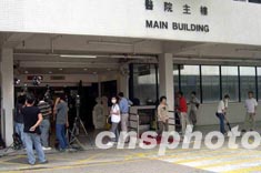 香港衛生署署長林秉恩在16日下午的記者會上說,昨晚轉送到瑪嘉烈醫院的三十四歲女病人,經過多次測試后,證實并無感染非典型肺炎。圖為瑪嘉烈醫院受到傳媒關注。作者:譚達明