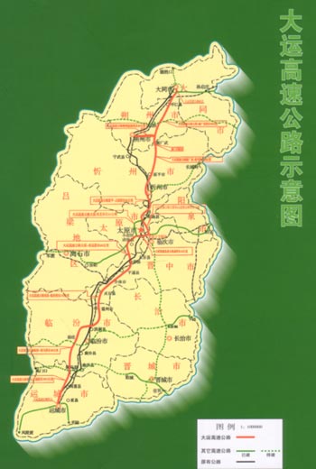 大運高速公路北起古城大同,南至黃河三角洲新興城市運城,縱貫山西南北,穿越山西8個市地31個縣市區132個鄉鎮495個行政村,全長666公里,雙向六車道,總投資222億元,是國家二連浩特至河口國道主干道線和臨汾至三亞重點公路的重要組成部分,是山西“三縱三橫”公路最重要的中軸快速通道。
