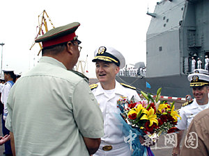 中新網湛江9月22日電(徐建恩)美國第五艦隊兩艘軍艦考佩斯(Cowpens)號和范德格里夫號今日上午九時駛入廣東湛江港碼頭,這是美艦對中國海軍南海艦隊的首次訪問,美太平洋艦隊第五航母大隊司令詹姆斯·凱利準將隨艦訪問。