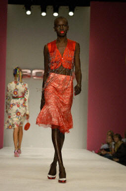9月22日在倫敦時裝周上,模特現場展示了2004春夏最新流行服飾。