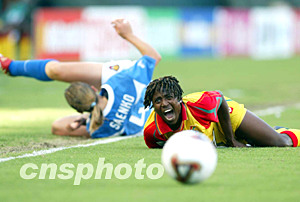 美國當地時間9月25日16點15分,2003年第四屆女足世界杯D組加納隊對俄羅斯隊的比賽在美國洛杉磯南部卡森的The Home Depot Center體育場舉行。上半場俄羅斯隊1比0領先下半場俄羅斯隊擴大戰果,最終以3比0獲勝。作者:劉占坤