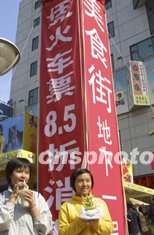 北京十一黃金周期間外地游客大幅上升,北京王府井一家美食廣場為招攬客源推出“憑火車票八五折消費”的優惠措施,吸引了大批旅游者。中新社記者:廖文靜