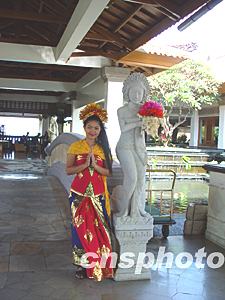 東盟系列峰會將于七日在印尼旅游勝地巴厘島揭幕,身著民族傳統服飾的印尼少女歡迎來自中國的尊貴客人。中新社記者 齊彬 攝